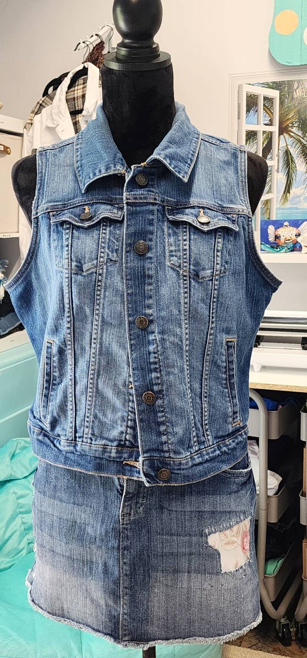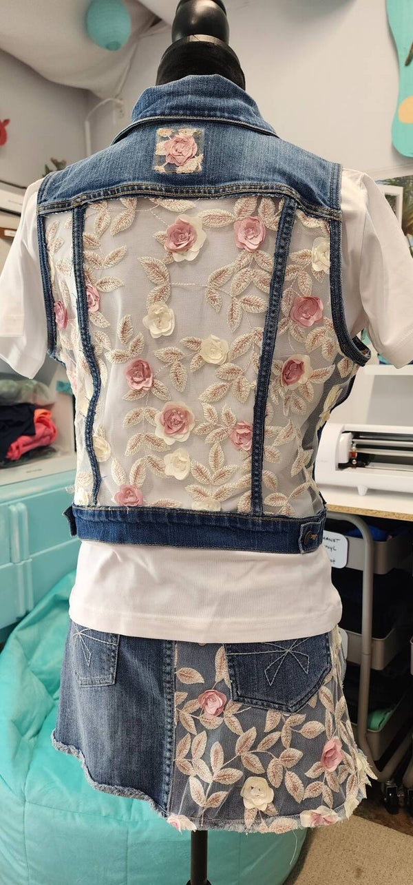 This stunning lace vest with skirt is a unique creation.It's worth a million dollars as the vest's back is see-through, enabling any shirt to be visible underneath.