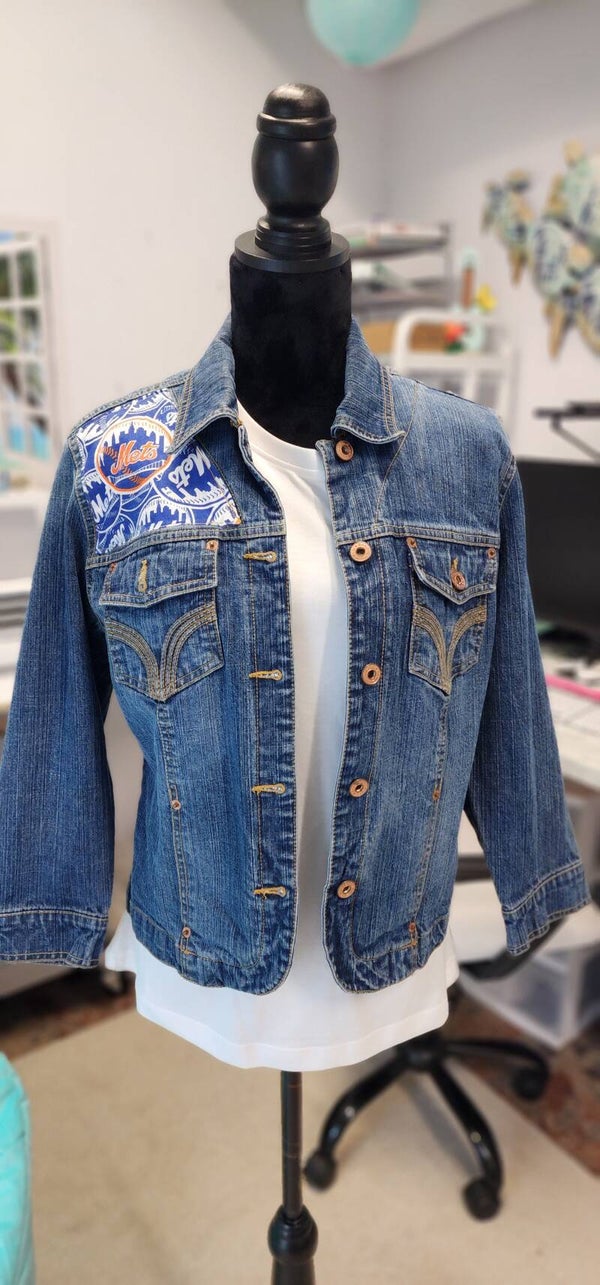New York Mets Bandolindoblu upcycled denim jacket. This is definatley one for the win with your favorite team player Alonzo on the back! Let's go Mets.