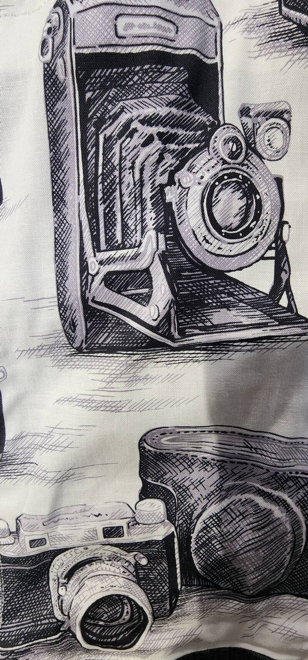 Photographer, employ your skills to capture the economic significance of a medium-sized, upcycled jeans jacket in black and white, amidst lights, camera,and action.
