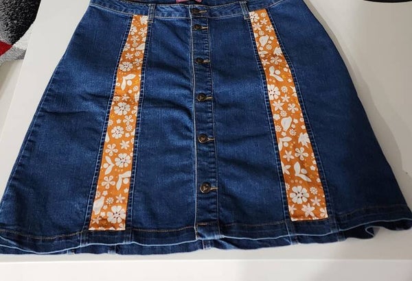 Women's Upcycled Jean Skirt with Fall-Inspired Details